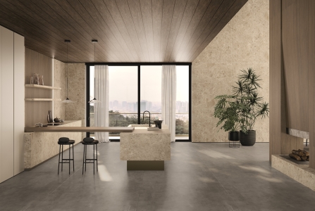 Nyra Ambrosia is inspired by the natural elegance of classic stone, featuring warm beige tones enriched with delicate fossil-like details and subtle movement. Its refined texture creates a sense of harmony and understated sophistication, making it suitable for both modern and timeless interiors.