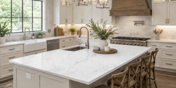 Featuring a soft white base with delicate, flowing gray veining, this surface delivers a subtle marble-inspired look that enhances both contemporary and classic interiors. Its understated pattern creates a calm, sophisticated backdrop while maintaining strong visual interest.